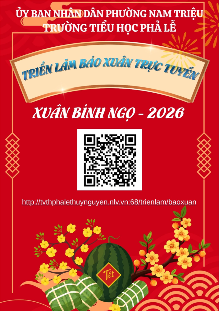 Trong không khí rộn ràng chào đón mùa xuân mới – Xuân Bính Ngọ 2026, Trường Tiểu học Phả Lễ trân trọng kính mời quý thầy cô giáo, quý bậc phụ huynh và các em học sinh tới tham gia xem và thưởng thức Báo Xuân 2026 tại trang thư viện số của nhà trường http://tvthphalethuynguyen.nlv.vn:68/trienlam/baoxuan/.